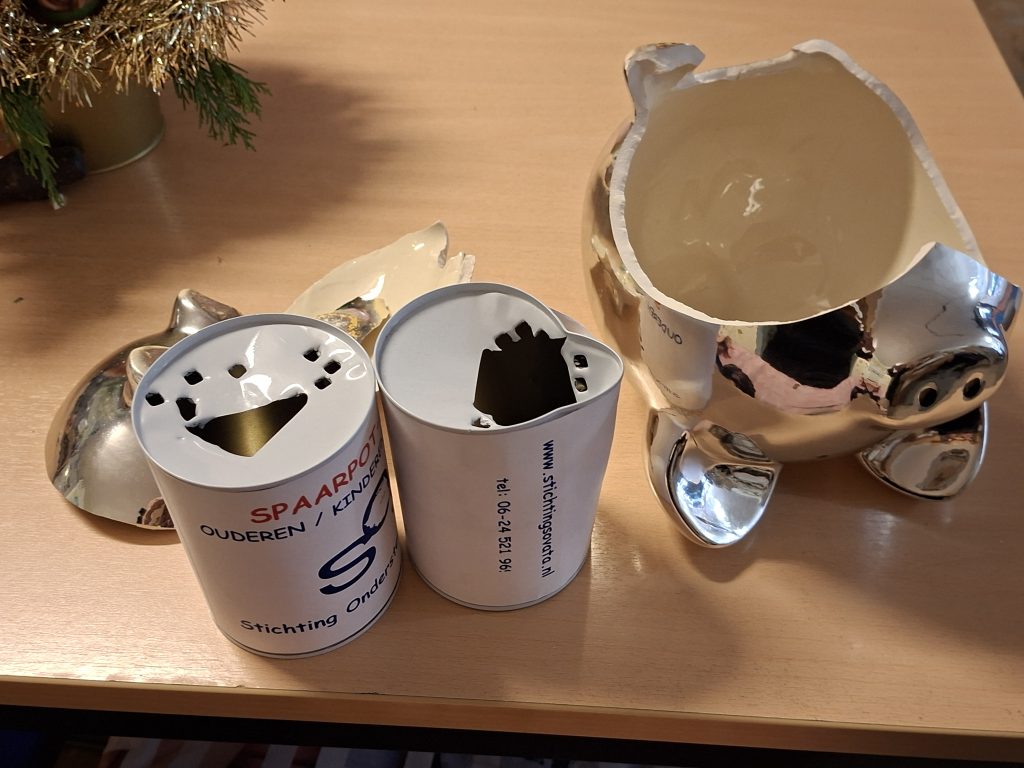 De financiële schade van de inbraak bedraagt € 150,- uit de spaarpotten en maar liefst € 310,- van de verkochte Kerstengeltjes.