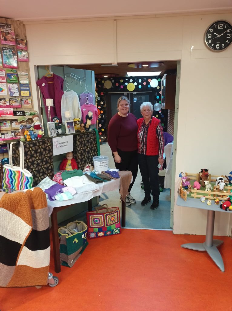 Mandy weer op de been voor de verkoop van leuke en mooie gehaakte dekens, kindertruitjes, poppenkleertjes, kleine snuisterijen en allerlei andere leuke, vrolijke
